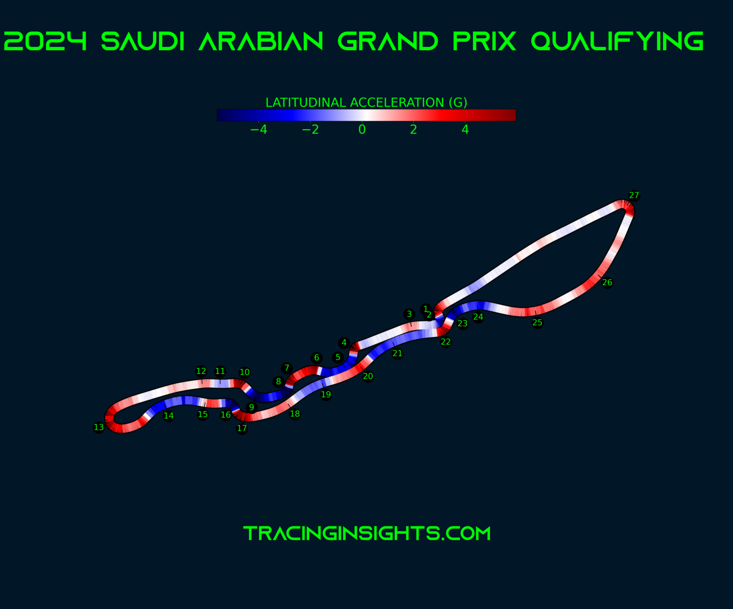 Anatomy of Speed: Dissecting Jeddah's 6.174km Ribbon – Featuring 27 Unique Corners, High-Speed Flow, Critical 12% Banking at T13, Minimal Braking Zones, and an 80% Full-Throttle Lap Profile