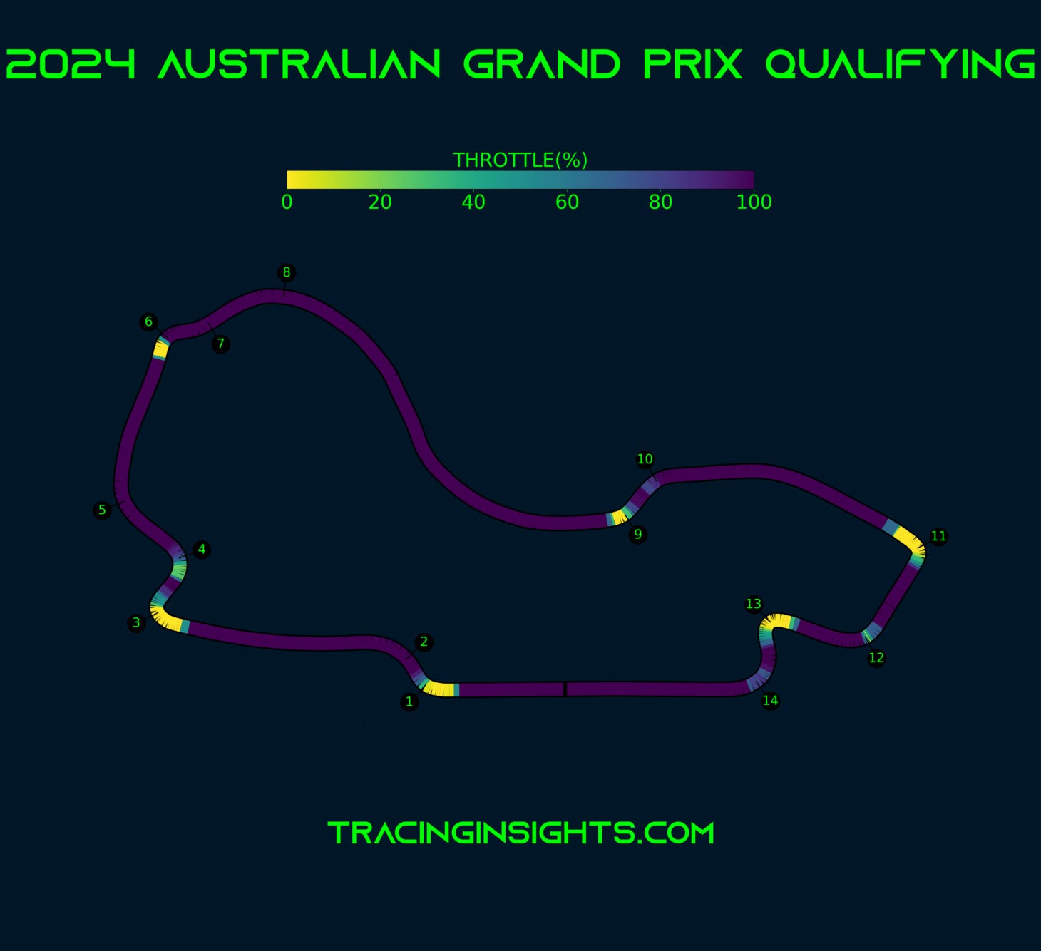 A lap around Albert Park demands remarkably few gear changes - just 35 per lap, second only to Monza's streamlined profile. Drivers spend a substantial 71% of lap time at full throttle, again only surpassed by the Temple of Speed.