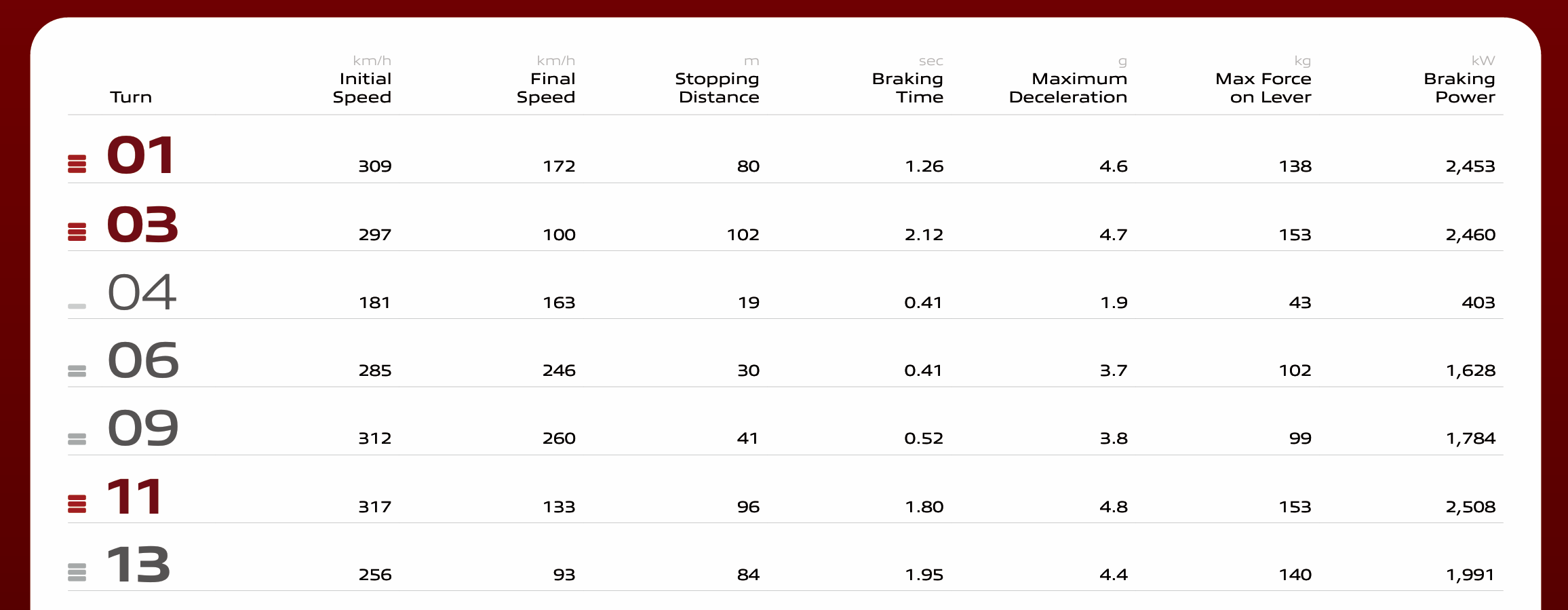 According to Brembo data, drivers spend approximately 11% of lap time on the brakes, with Turn 11, Turn 3, and Turn 1 representing the most demanding braking zones. The circuit ranks medium (3 out of 5) on Brembo's brake stress index, but the increasing grip levels across sessions lead to escalating temperatures in discs and pads—a critical factor teams must monitor throughout the weekend.